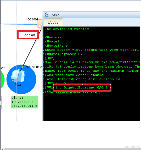 2、将PC3连接的端口G0/0/2加入到VLAN10中