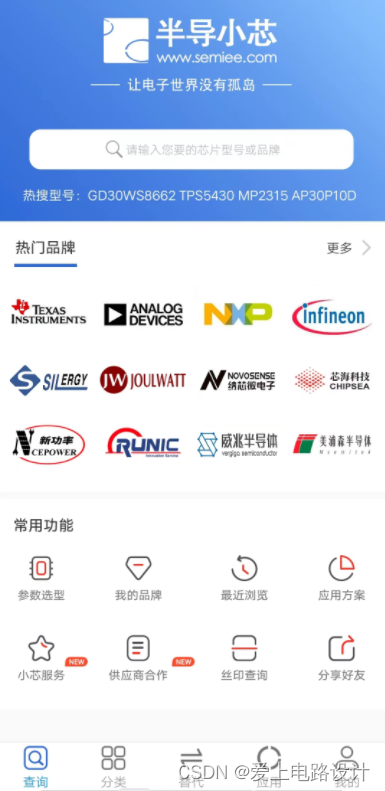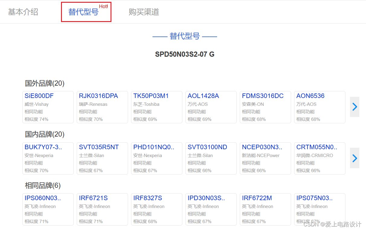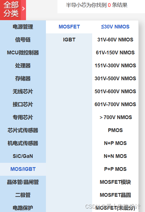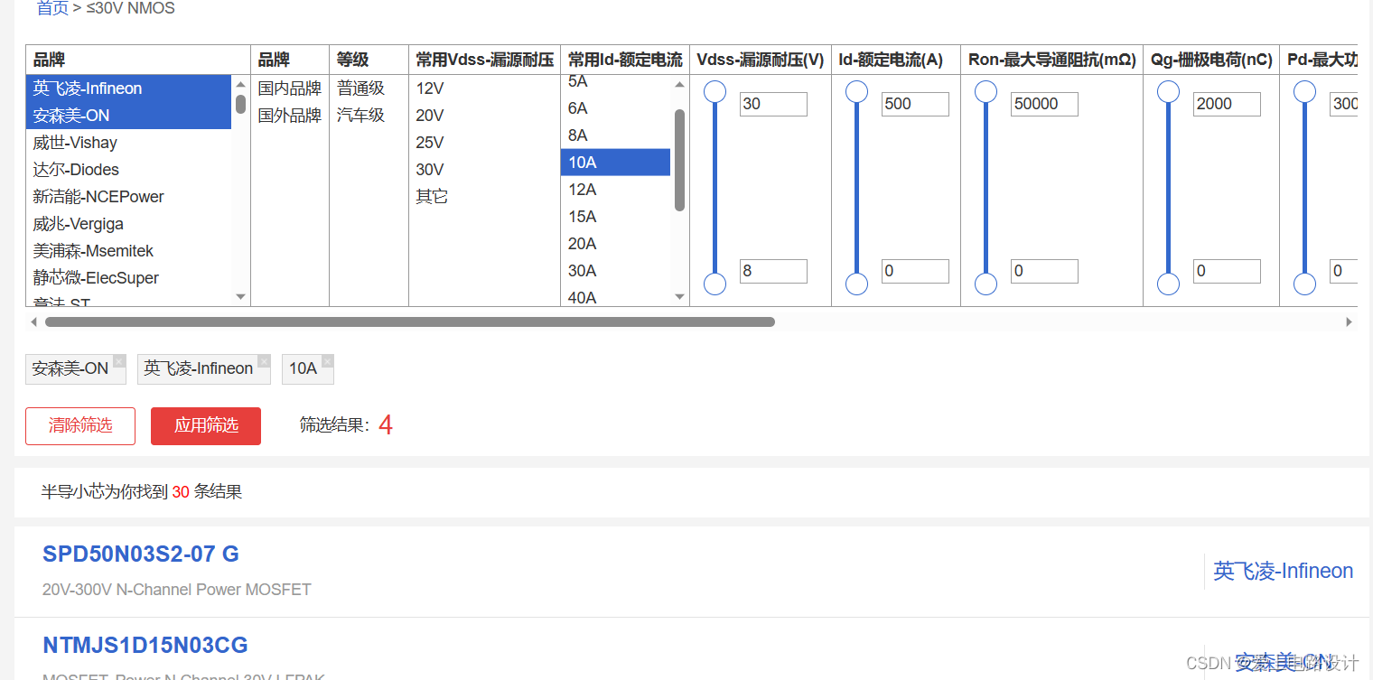 可选择品牌、等级(比如)、漏源电压、额定电流、Rds(on)等,非常实用。