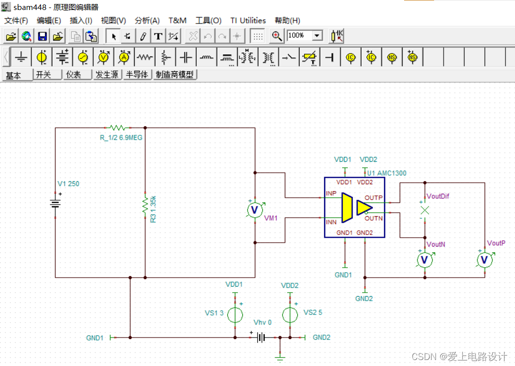 它是德州仪器 (TI) 专有的DesignSoft产品。该免费版本具有完整的功能,但不支持完整版TINA所提供的某些其他功能。