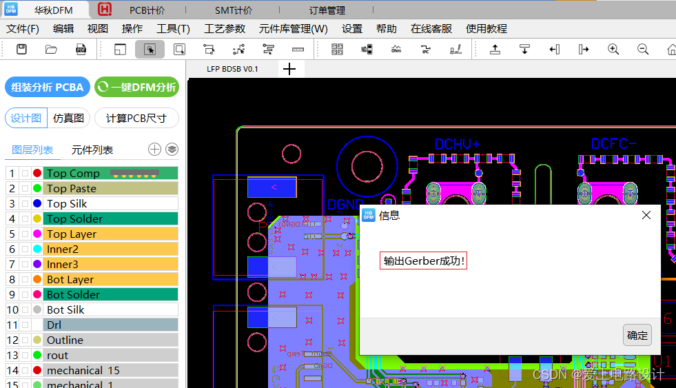 此软件使用前需要联网。它是一款PCB可制造性设计分析工具,通过华秋DFM官方版能够帮助用户规范PCB设计标准预防品质缺陷,精准定位设计隐患,提供优化方案,支持一键输出Gerber、BOM、坐标文件,促进增效降本,关键是Layout工程师永久免费!