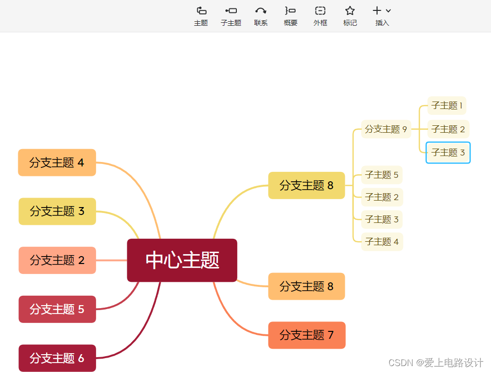 如果分支主题下还需要添加下一级内容,可以再创建子主题,可按Ctrl + Enter键或Insert键,或点击工具栏上插入主题按钮后面的小黑三角,选择父主题。