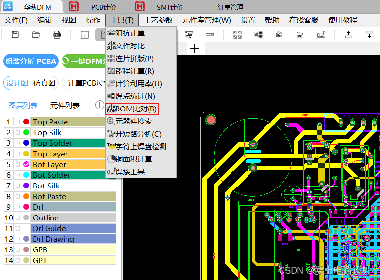 1)BOM对比功能 2)Gerber文件的生成与查看