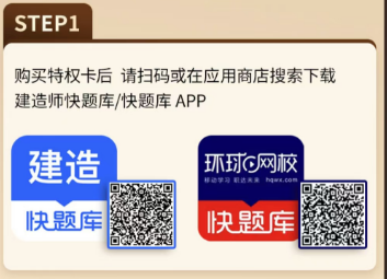 购买特权卡后 请扫码或在应用商店搜索下载建造师快题库/快题库APP