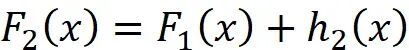 然后我们可以训练另一个浅决策树,以 x 为特征,以 ( y - F_1(x) ) 为目标。这个模型的预测,表示为 ( h_2(x) ),被添加到 ( F_1(x) ) 中: