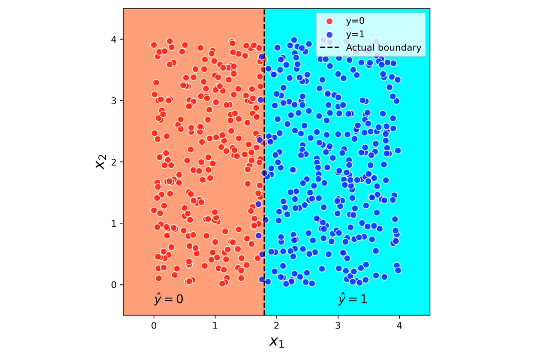 linestyle=”–”, label=“Actual boundary”)