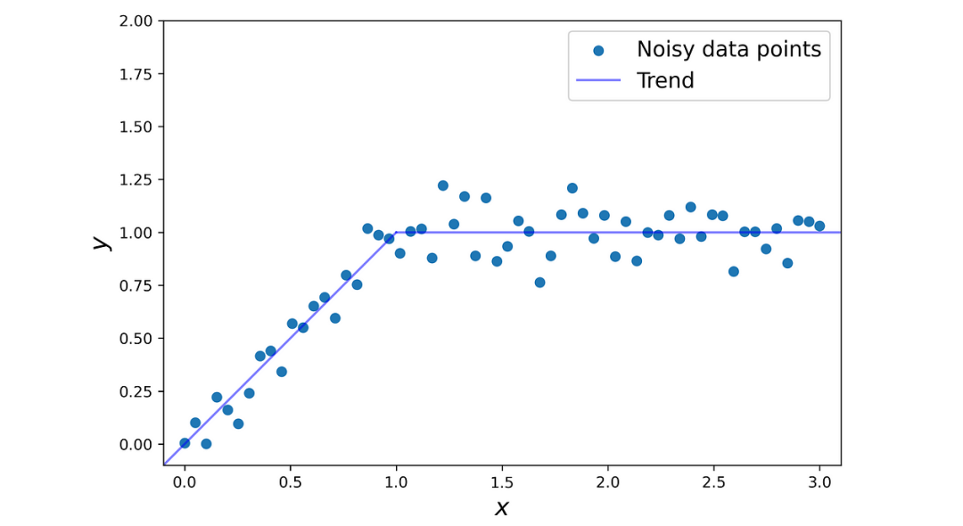 决策树是非参数模型的一个例子。让我们以决策树回归器和线性回归模型为例进行比较。线性回归是一个参数模型,假设目标与特征之间存在线性关系。当数据集只有一个特征时,这种线性关系由以下方程给出: