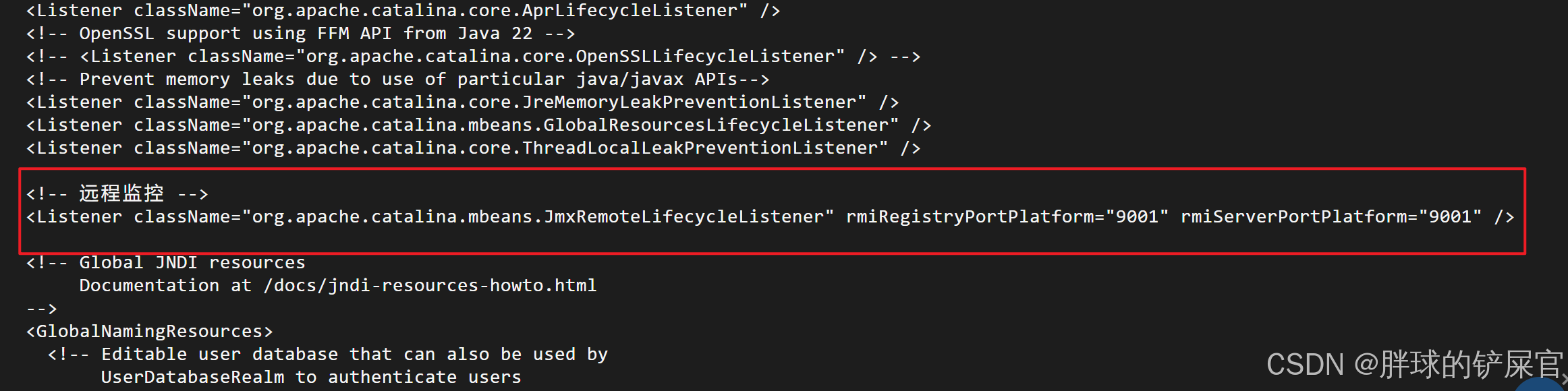 3、进入tomcat的conf目录,修改server.xml文件,添加如下的监听配置