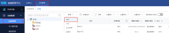 - 1)登陆VM 7010页面(http://VMIP:7010),进入系统管理->设备配置->设备管理->本域,点击新增相机。