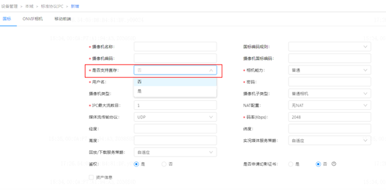 上文相机添加界面基于B3355版本,后续发布B3358新版本的相机添加界面将去掉“厂商信息”选项,修改为“是否支持直存”,若为我司上述版本范围的相机则选择“是”,其他相机则选“否”。