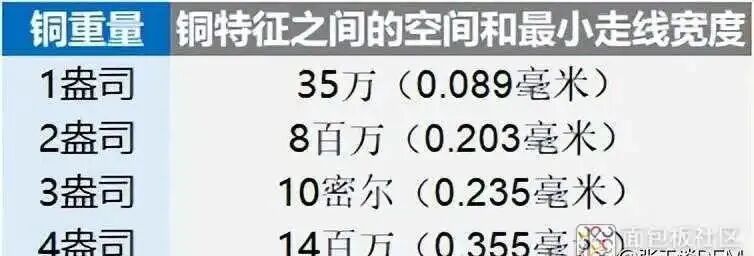 当你使用厚铜包层时,需要调节走线之间的间距。不同的设计师对此有不同的规范。下面是关于铜重量的最小空间要求的示例。