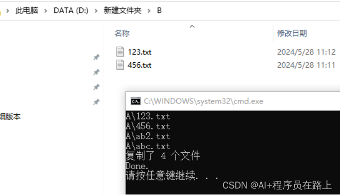 批处理脚本实现:把文件夹A中的文件拷贝到文件夹B中,并删除文件名中含有字符“ab”文件