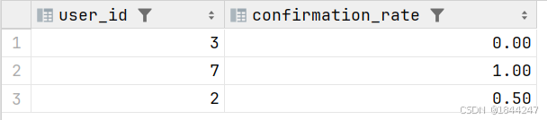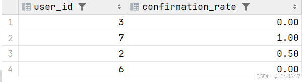 一 我们先按照user_id 进行分组,然后将表 Confirmations 内的 confirmation_rate 先算出来。