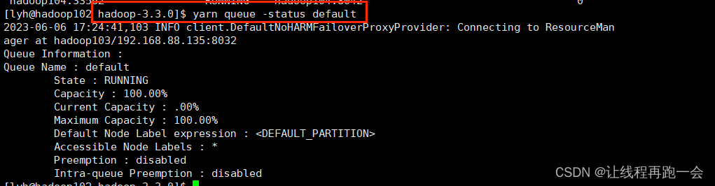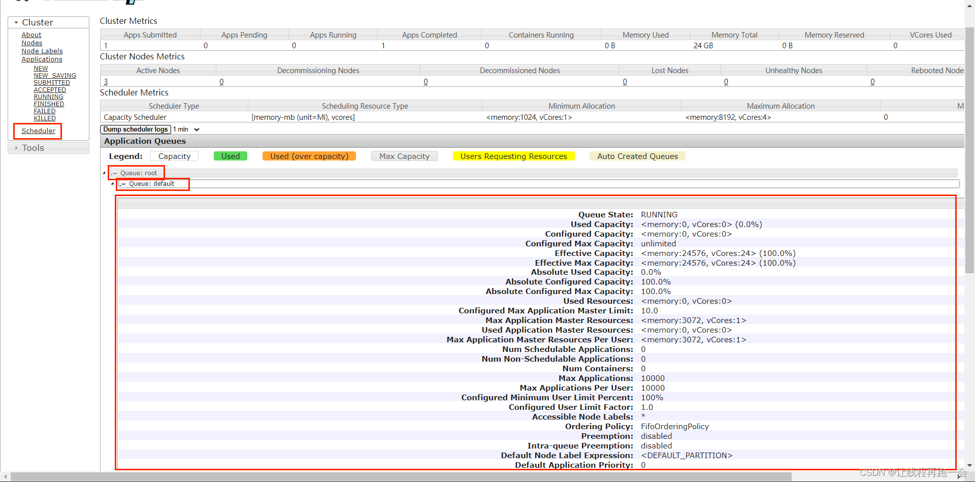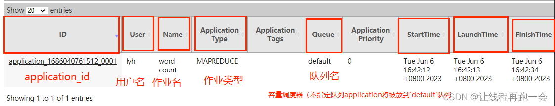 对于容器调度器的话,如果不指定队列,那么应用将被放在一个名为‘“default”的默认队列当中。