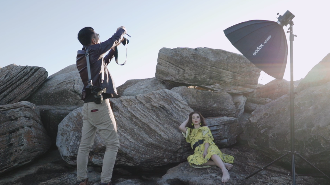 太阳快下山了,光线变化太快,这里使用TTL拍摄能够保证不浪费拍摄时间。海边有风的情况下,使用S2支架可以更好的固定闪光灯和柔光箱。