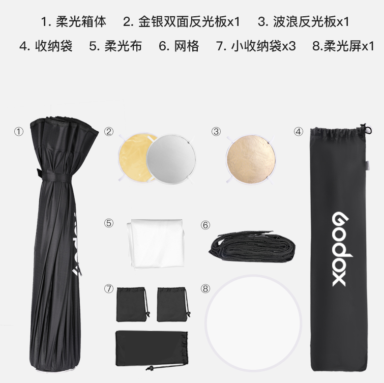 AD300pro自带神牛卡口,神牛口AD-S65和AD-S85轻巧便携,拆装快速,既可作为柔光箱使用,还可作为雷达罩使用。