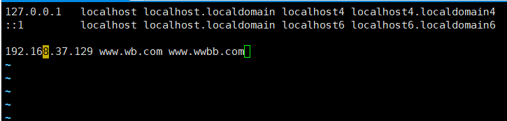 <VirtualHost 192.168.37.129> DocumentRoot /home/yuming/wb ServerName www.aaa.com <Directory "/home/yuming/wb"> AllowOverride None Require all granted </Directory> </VirtualHost> <VirtualHost 192.168.37.129> DocumentRoot /home/yuming/wwbb ServerName www.bbb.com <Directory "/home/yuming/wwbb"> AllowOverride None Require all granted </Directory> </VirtualHost>