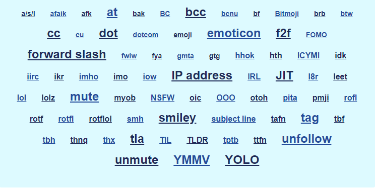 邮件中除了常用到“AFAIK”以外,也经常会用到以下这些缩写: