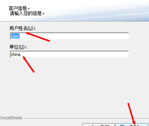 随后,我们按照实际需求输入用户名以及单位名称,点击【下一步】,一般我们选择【简体中文】,当然,如果你英语水平可以的话,你也可以选择【英语】。