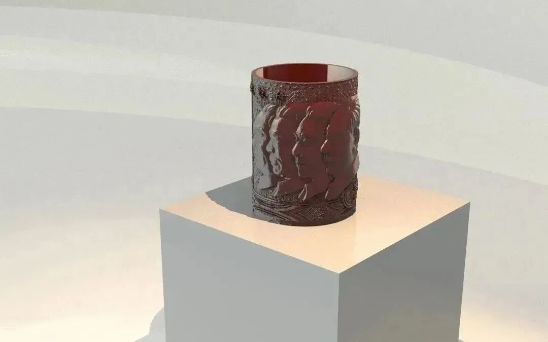 我们设计的浮雕笔筒上面的图案选自第四套人民币中的100元人民币正面图样。上面雕刻着***、***、***、朱德四位领袖像。2022年是党的二十大召开之年,也是向第二个百年奋斗目标进军新征程的开局之年。回望第一个百年,是这四位领袖带领我们的国家渡过了最艰难的时光,迎来了美好的未来。我们希望以此献礼二十大,做到感怀先辈,向第二个百年奋斗目标迈进!