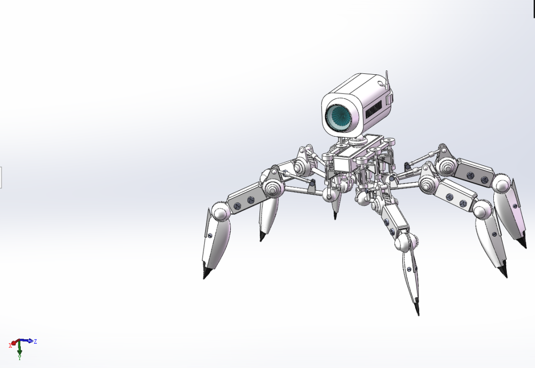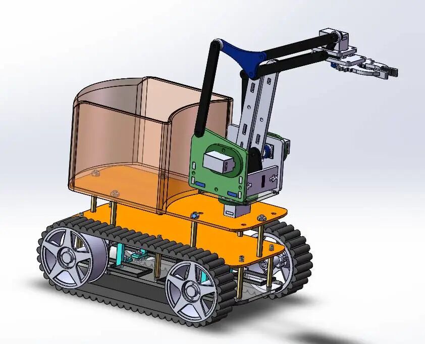 我们设计的作品名称为“空中手”,灵感来源于工业中的挖掘机。它是由六个车轮支撑着主干,但其主要工作由前驱负责,前驱如一只悬挂在空中的手,即能灵活转动,又能开闭自如,可以搬运大小物件,高低物品等。同时手象征着灵巧,展示着生命的活力,所以“空着手”是希望我们的命运能由自己掌控,人生由自己双手去创造!