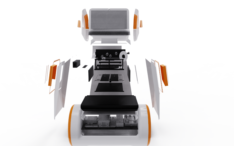 针对于快递网点中快递寄件的问题我们进行了深入调研研究,从中发现排队等候是存在的主要普遍问题,由此我们从此方向出发进行方案设计,设计出了一款AI智能邮寄机器人,它主要针对于日常生活用品中小件货物邮寄。AI智能邮寄机器人可实现信息接收、贴单、套袋、称重、信息传送、环境识别、自主移动摆放物件等功能。