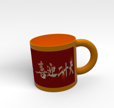 我们所作的模型为水杯,嘴底同宽,壶身刻有文字,“喜迎二十大。杯子是浪漫的象征,同时也是易碎品,象征朋友间要万分珍惜。今二十大盛会,祝愿国家强盛,也表达了对祖国与各国结为朋友,共同发展的决心。
