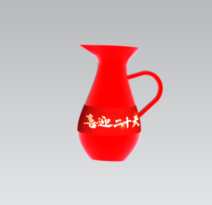 我们所作的模型为茶壶,嘴细底宽,壶身刻有文字,“喜迎二十大。,茶壶寓意吉祥,祝福,尊重,同时也代表了人们精致的生活方式。于今二十大盛会,祝愿国家强盛,也表达了对各国家文化的尊重与祝福。