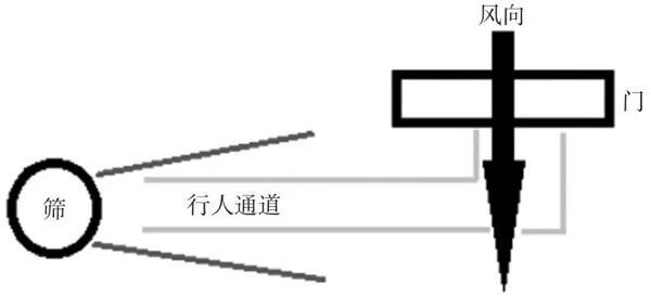 使用单位大多将体温筛检用红外热像仪安装在大门口(见图1),测量时因为人员出入开关门等因素,测温区域常有风进入,环境温度不恒定,此时温度偏差和温度波动度较大,测量不准确。