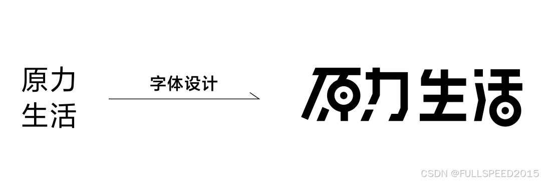 在“原力生活”Logo的设计中,全速首先进行了一个基础型的风格设计,改进字形粗细以及大小关系。设计过程中将硬朗的线条转换为圆形,以此体现“原力”一词。就像是一个“小星球”,让LOGO更显趣味的同时,也意在以此致敬《星球大战》系列作品。