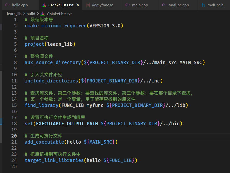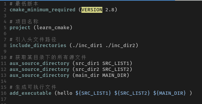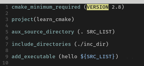 cmake_minimum_required (VERSION 2.8)project (learn_cmake)add_executable(hello hello.cpp)