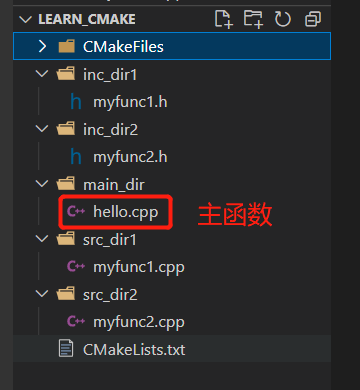 假如说当前的工程目录是这样的,头文件和源文件分离,并含有多个文件夹