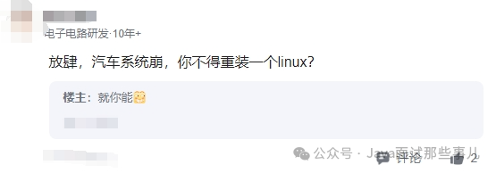 网友们也都很懂。有网友就说了:“放肆,汽车系统崩,你不得重装一个linux?”哈哈哈,你是懂内卷的。