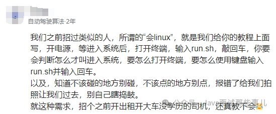 更有网友一句话总结:“就是会操作ubuntu图形界面。因为采集车的采集系统一般是ubuntu的”懂了,要求不是很高,只需要会用就行了。