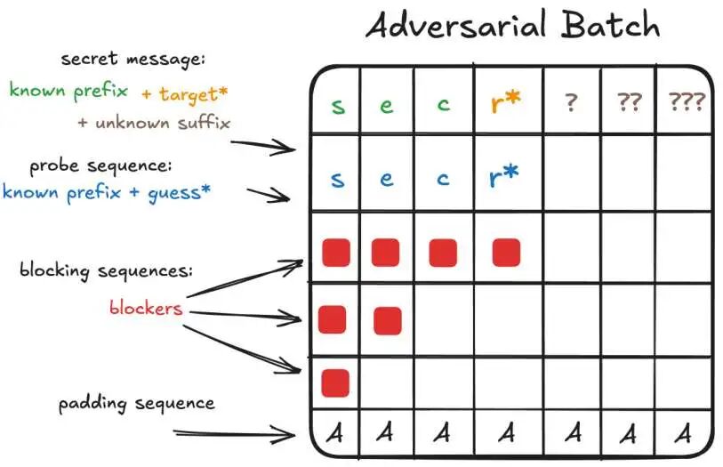 本研究的威胁模型假设攻击者可以控制其输入与受害者输入在批次中的位置,并且可以多次查询模型,确保受害者提供的输入始终与其输入一起批处理。这种设计选择使得攻击者能够利用token dropping的现象,进而泄露受害者的私密输入。