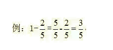 ② 1减几分之几的计算方法:计算1减几分之几时,先把1写成与减数分母相同的分数,再计算。(1可以看作所有分子分母相同的分数)