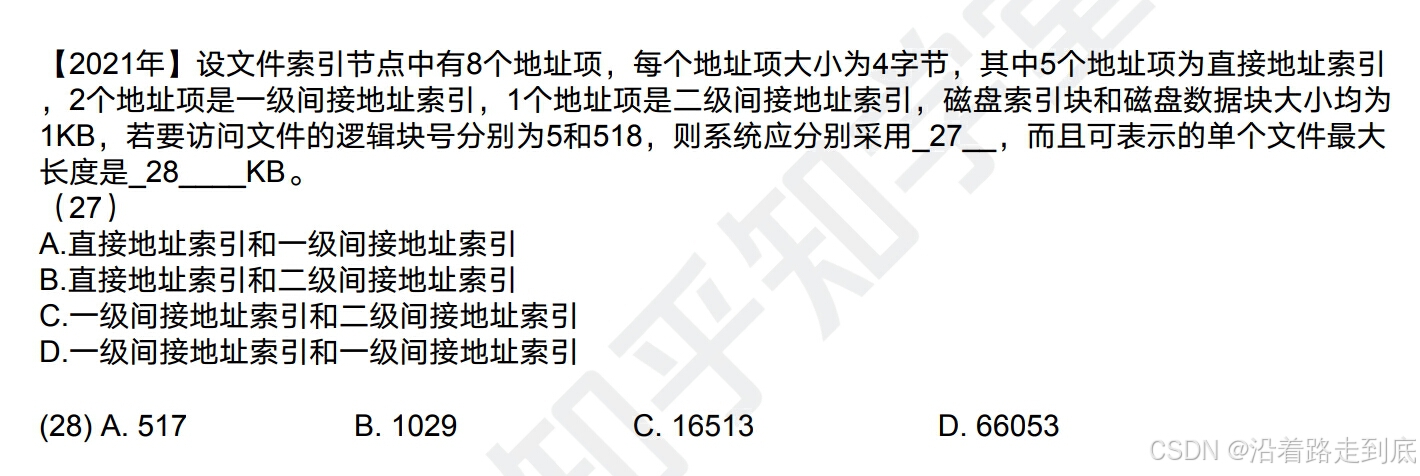 地址项和逻辑块号都是从0开始,因此逻辑块号5对应第6个地址项,是一级间接地址索引。