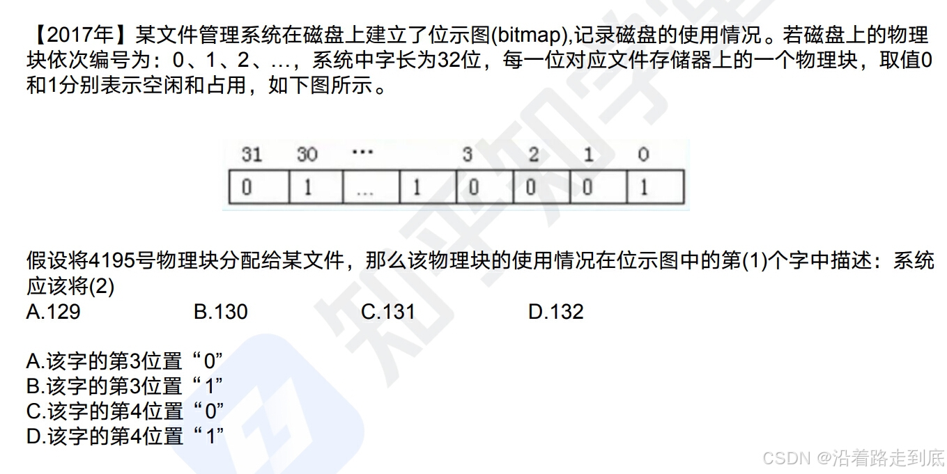 4196 - 131 * 32 = 4 因此 4195 号物理块放在 132字的第3位置