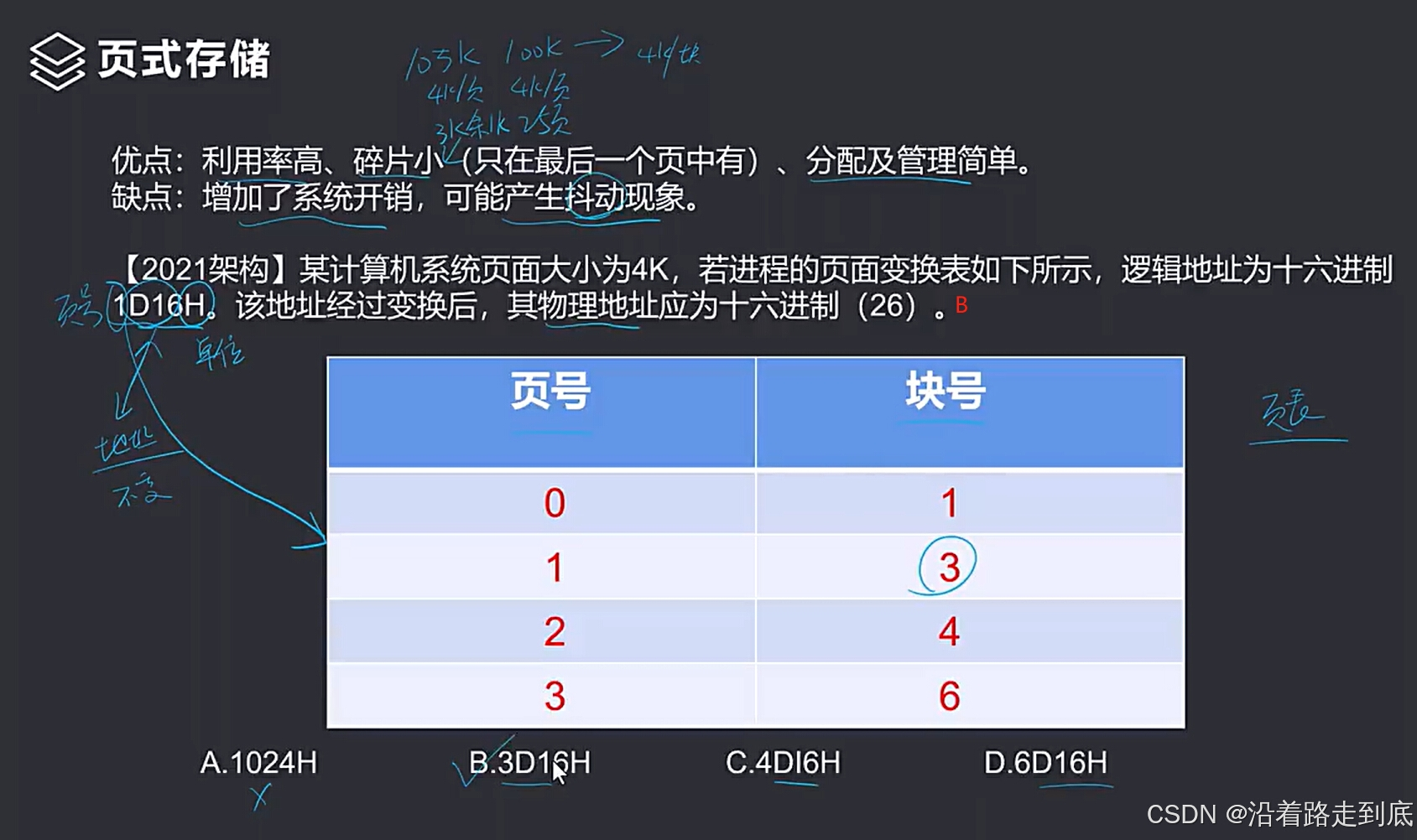 物理地址的页号对应逻辑地址的页号对应的块号,后面的地址一般都不会变,所以是 3D16H