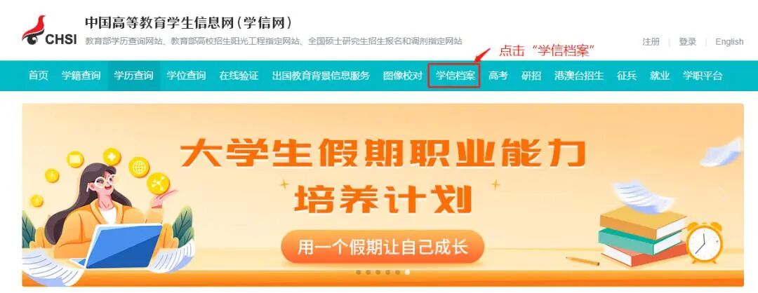登录学信档案,没有账号的须点击“注册学信网账号”注册后登录