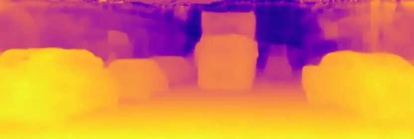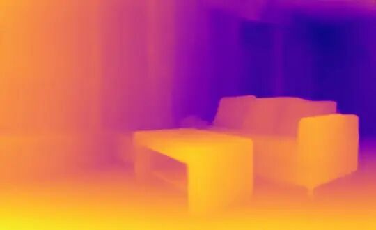我们可以直接使用模型输出的预测图象(注释部分),但是为了提高其鲁棒性,代码中先计算原图的深度图,再计算翻转后的图像的深度图,最后取两者的平均作为最终的深度图。