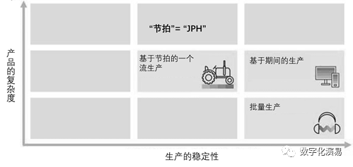 在生产执行的复杂度方面,与离散式生产或流程式制造相比较,重复式生产则显得更为简单。在重复式生产中,所有的设备或工作站通过流水线或物流小车连接(刚性物理连接或柔性逻辑连接)在一起,以共同的节奏来运行,因而也有人称之为基于节拍(takt-based)的生产。