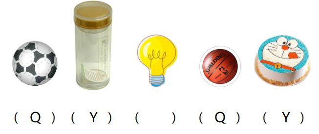 1. 在圆柱的下面写“Y”,在球的下面写“Q”。