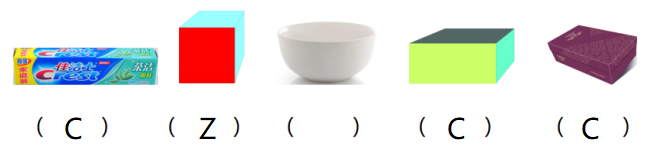 2. 在长方体的下面写“C”,在正方体的下面写“Z”。