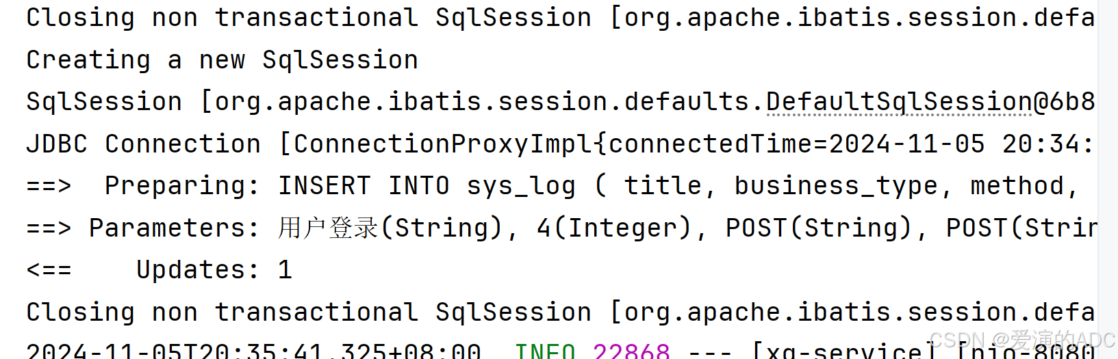 讯享网@Log(value = “用户登录”,title = “用户登录”,method = “POST”,businessType = BusinessTypeEnum.SELECT) @PostMapping(“/login”) @Operation(summary = “用户登录”) public Result login(@RequestBody SysUserDTO sysUserDTO){ log.info("用户登录{}",sysUserDTO);