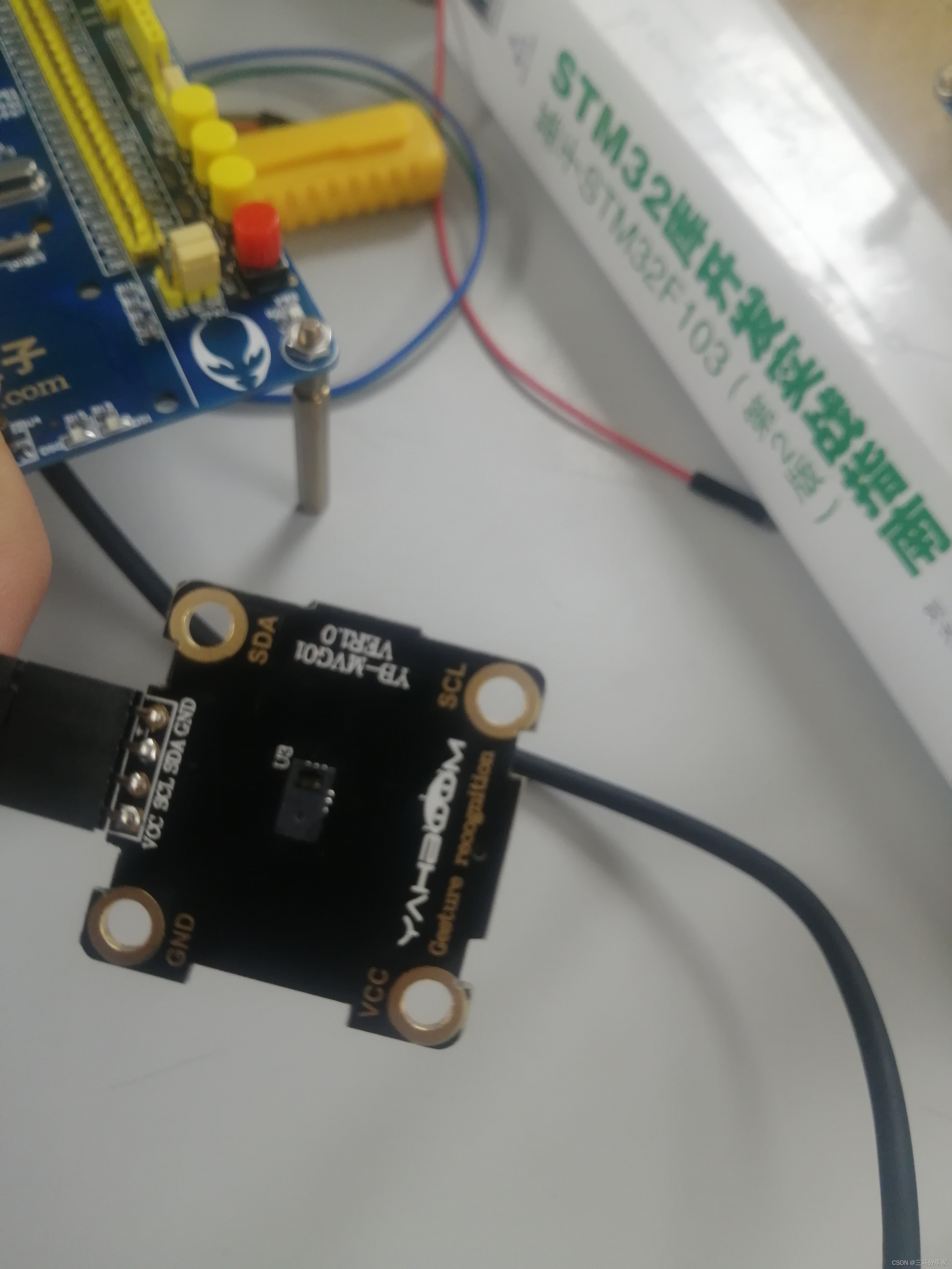 (额外)正点的模块是多两个个INT和NC的引脚:NT是中断引脚,NC是未连接引脚。NC没用.主要是INT,INT是中断引脚,或者相当于手势识别模块的输出引脚,NT引脚连接到外部微控制器的中断输入引脚(例如Arduino的数字引脚),用于通知微控制器检测到手势。当检测到手势时,PAJ7620芯片会将基于手势识别的控制信号转换成一个电平,从INT引脚输出,通过这个引脚,可以实现手势识别后的外部设备控制。