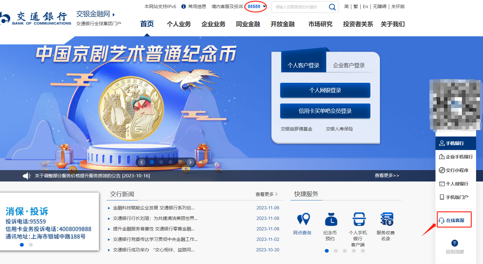 2.在银行官网联系在线客服咨询,如图所示: