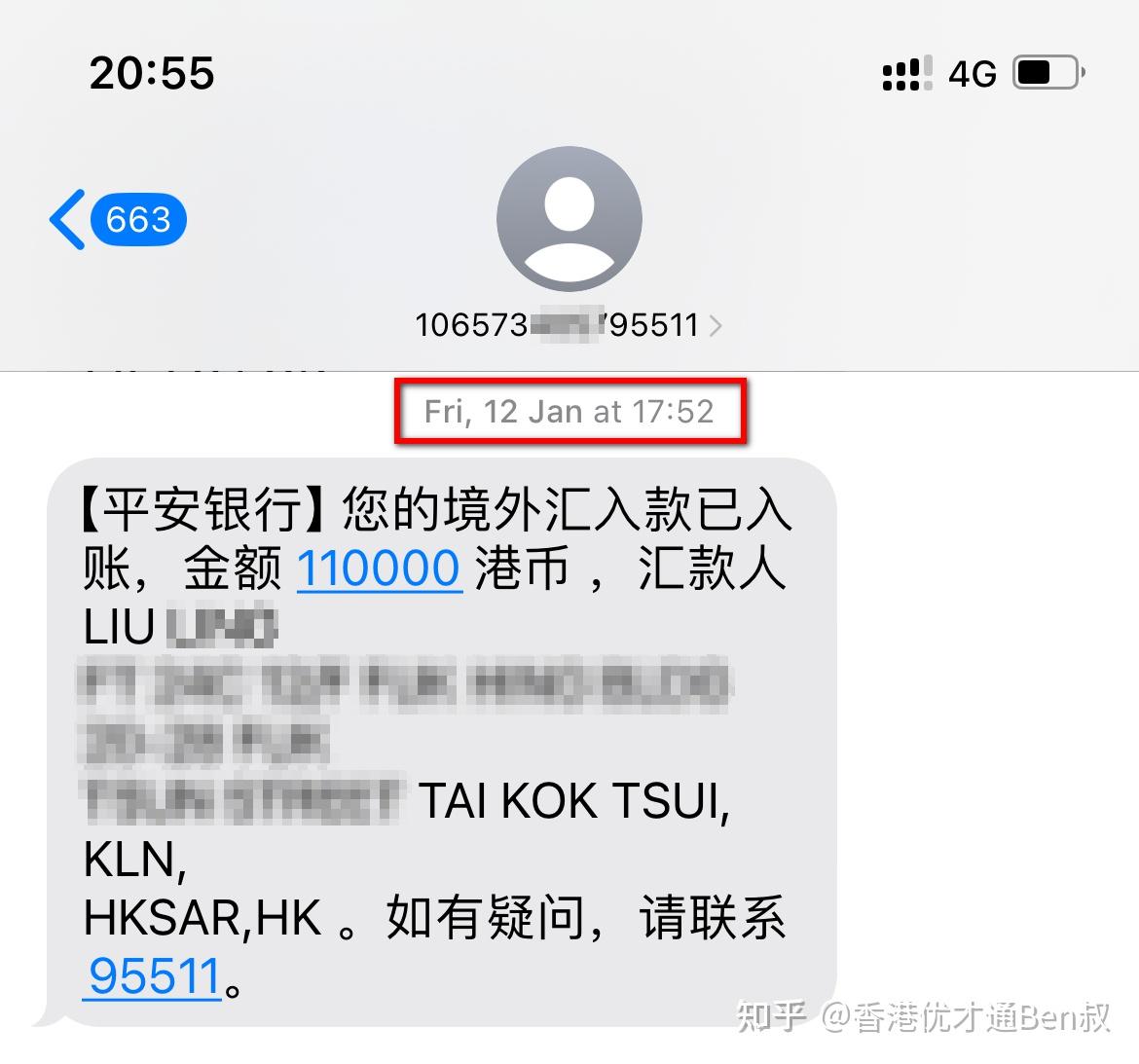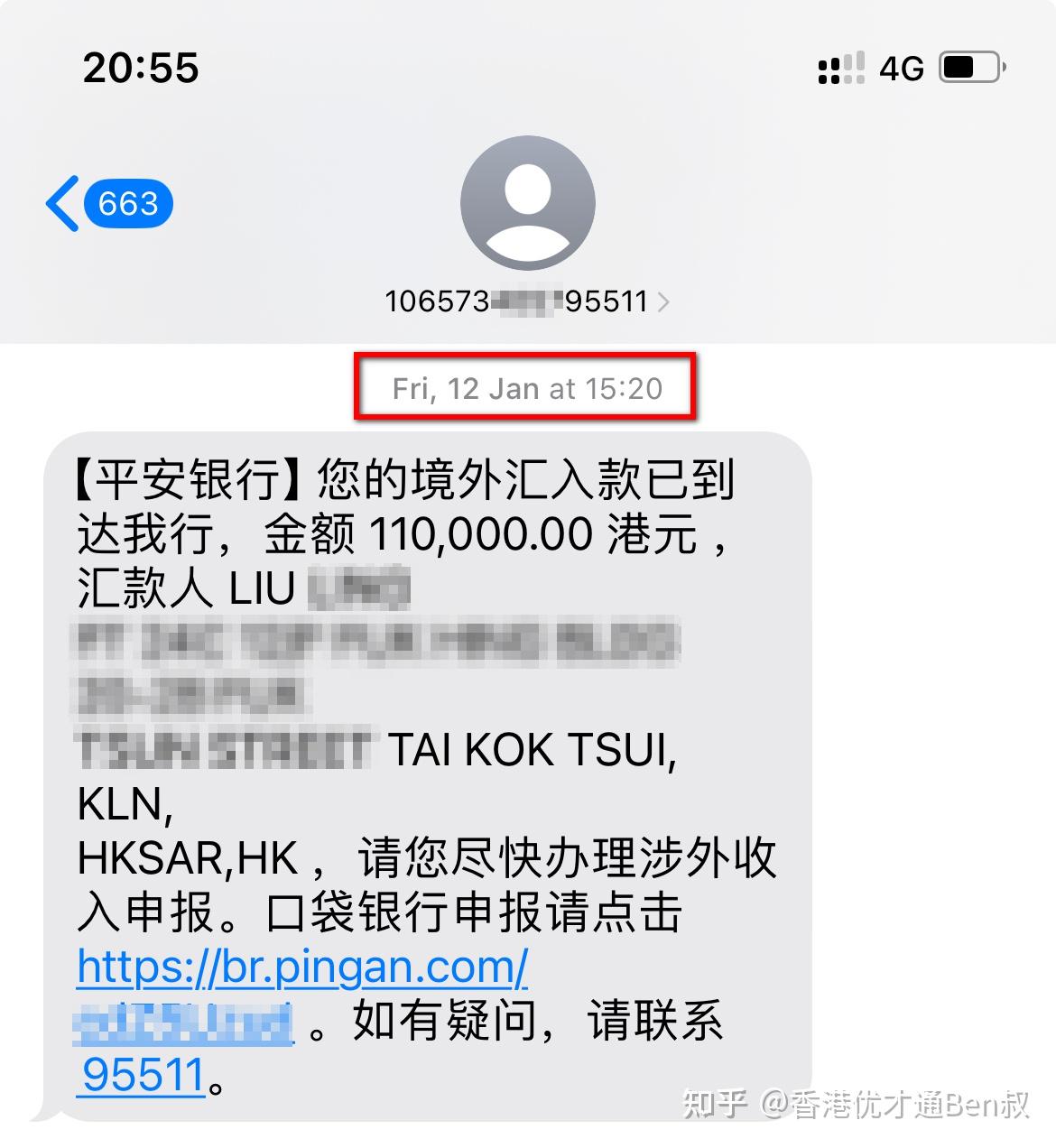 我的案例有点特殊,可能刚好赶上银行的cutoff time,竟然一个小时之后就收到了平安银行的短信通知,到达收款行了。如下图: