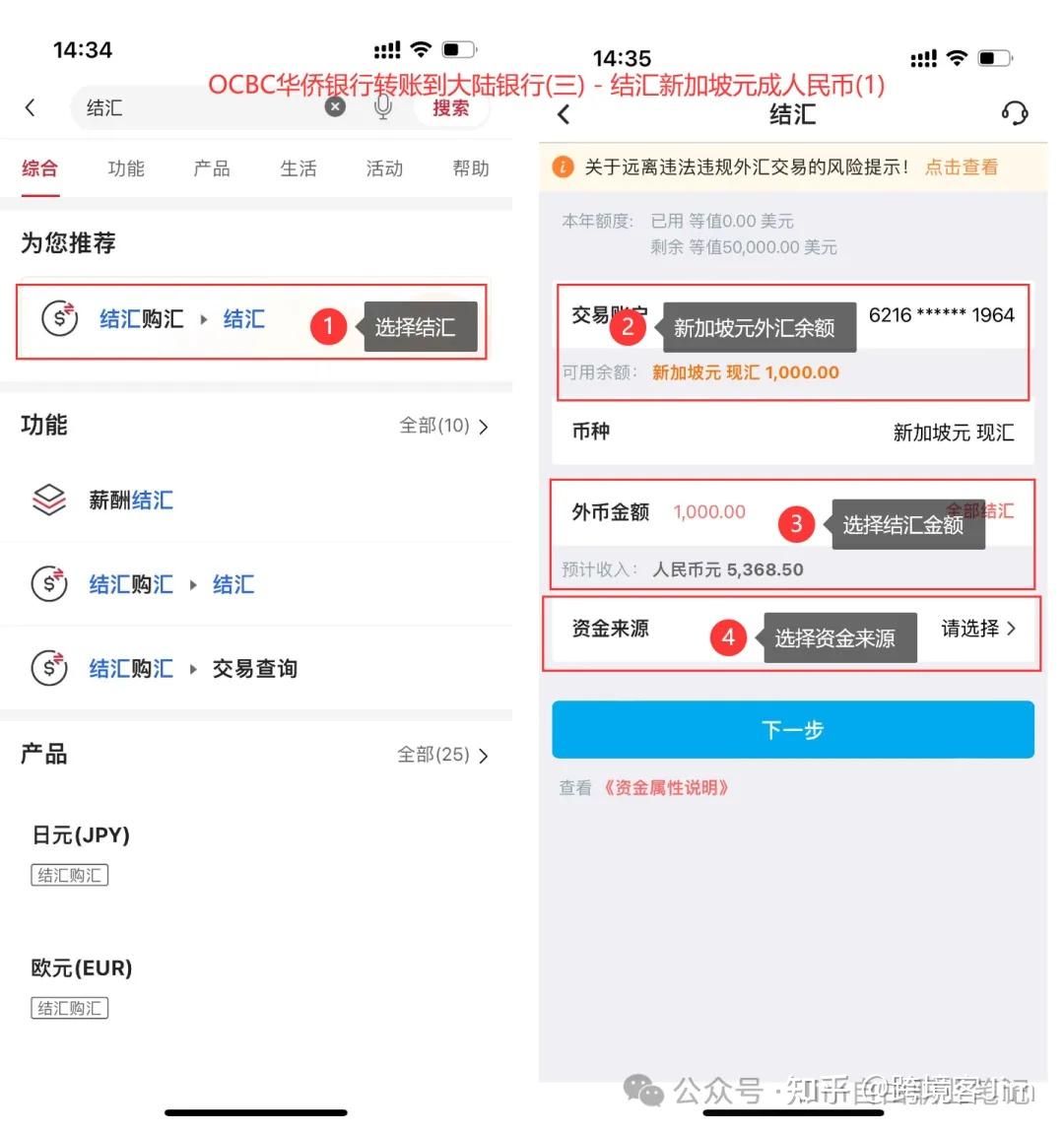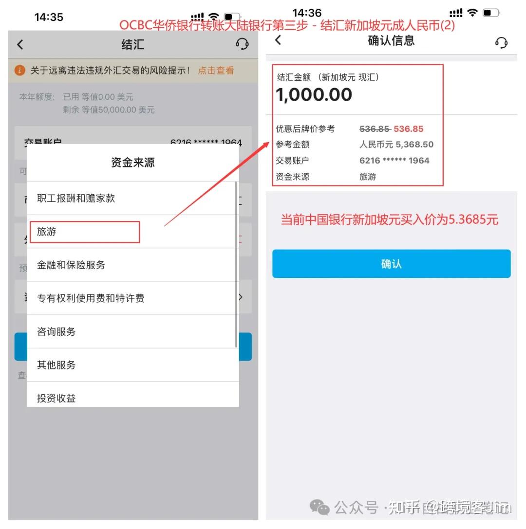 注意:新加坡元结汇会占用中国公民每年5万美元等值外汇额度。