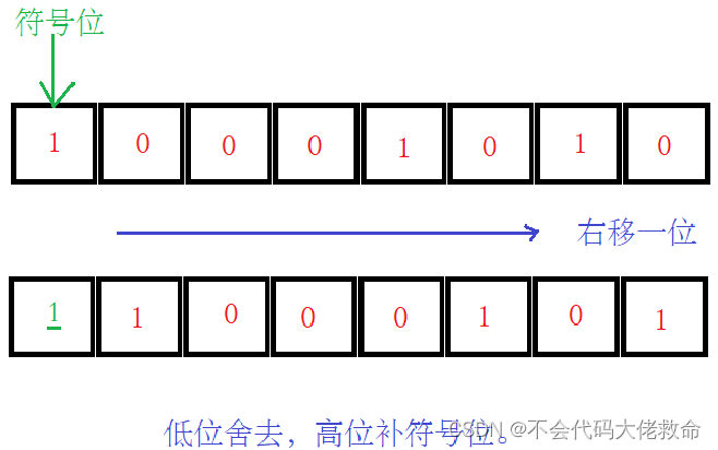 算术右移 算术右移:按指定的位数向右移位。 算术右移可以实现的功能:右移n位实现乘以2^(-n)的功能。