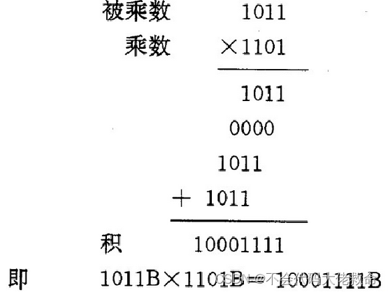 示例:求1011B×1101B=?